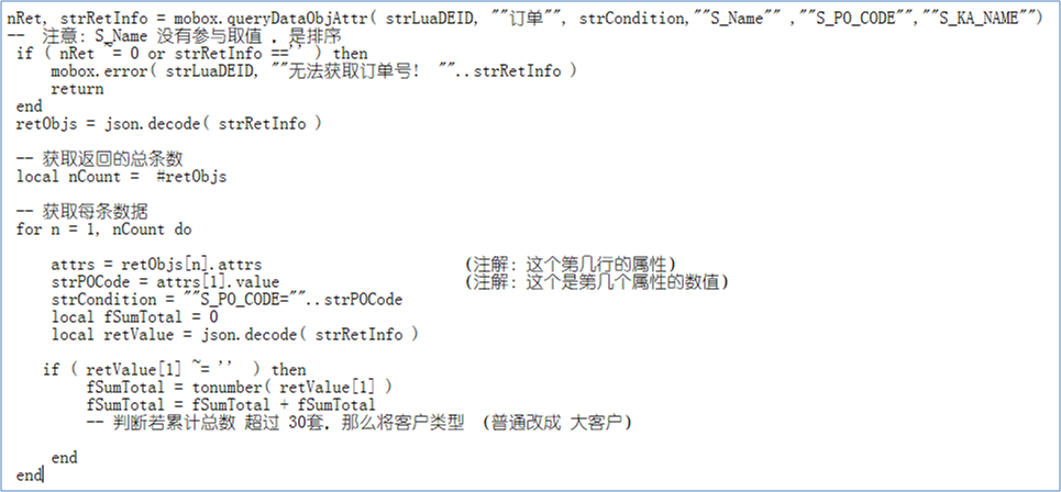 — 設(shè)置 商機(jī)編號,客戶編號,客戶名稱local setAttr = ‘[{“attr”:”S_KA_CODE”,”value”:”‘..strKASCode..'”},{“attr”:”S_KA_NAME”,”value”:”‘..strKAName..'”},{“attr”:”S_INDUSTRY”,”value”:”‘..strINDUSTRY..'”},{“attr”:”S_NATURE”,”value”:”‘..strNATURE..'”},{“attr”:”S_ACCOUNT”,”value”:”‘..strACCOUNT..'”},{“attr”:”S_TEL”,”value”:”‘..strTEL..'”},{“attr”:”S_ADDRESS”,”value”:”‘..strADDRESS..'”},{“attr”:”S_BANK”,”value”:”‘..strBank..'”},{“attr”:”S_EXPRESS”,”value”:”‘..strEXPRESS..'”},{“attr”:”S_TAX_CODE”,”value”:”‘..strKAtax..'”}]’