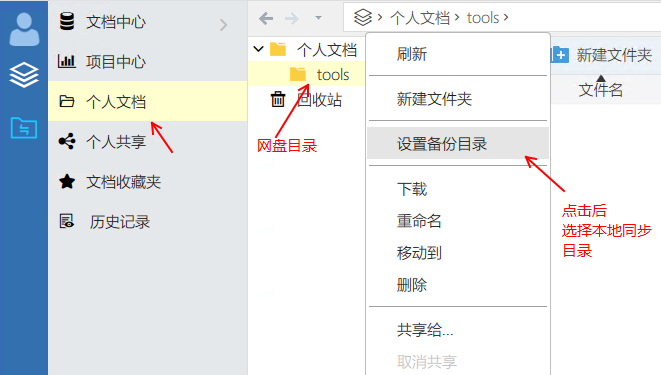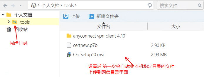 3)設(shè)置這個(gè)網(wǎng)盤目錄(tools)與本機(jī)電腦上指定目錄進(jìn)行文件同步(本機(jī)如:c:\tools)