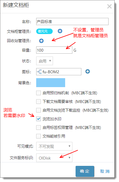文檔柜回收箱管理員:對當前文檔柜回收箱的文件進行還原或刪除(不設置的時候,文檔柜管理員就是回收箱管理員),回收箱管理員是避免文檔柜管理員權限過大而設置的