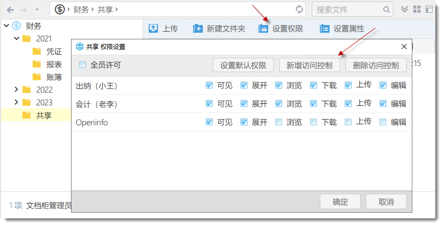 文件夾管理員:在管理的文件夾內具有所有文檔基本權限、及對該文件夾權限設置的能力