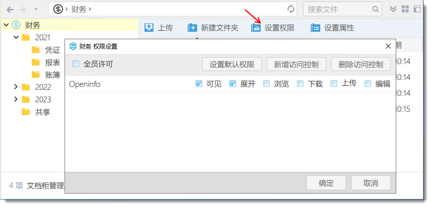 文檔柜管理員:對管理的文檔具有所有文檔基本權限、及對文檔柜權限設置的能力(注意:超級管理員不能擔任任何文檔柜的管理員,避免超級管理員權限過大)