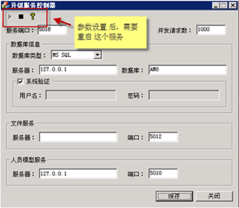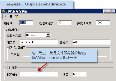 注解: 文件服務(wù)的服務(wù)器地址 (要求在局域網(wǎng)及外網(wǎng)都能訪問的IP地址)若有些用戶沒有外網(wǎng),則就是內(nèi)網(wǎng)能訪問的地址。 (一般我們的升級服務(wù)與AM8/Mobox的主服務(wù)都是在一臺機器上)參數(shù)更新后,需要重啟這個服務(wù)