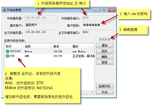 AM及Mobox客戶端可以實現(xiàn)在線自動升級。過程是,現(xiàn)在服務(wù)器端部署最新的升級包,AM或Mobox客戶端登錄的時候,能識別服務(wù)端已經(jīng)有新的版本,進而提醒客戶端進行升級。以下是服務(wù)端配置最新升級包的方法