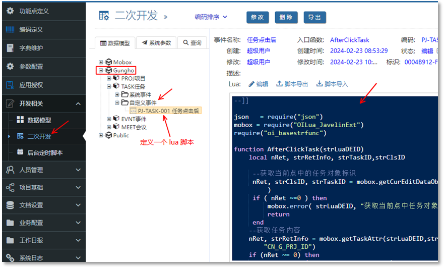 - 進入二次開發(fā) – gungho領域 – TASK任務 – 自定義事件