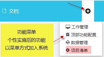 這里列出的有系統(tǒng)固有功能及二次開(kāi)發(fā)功能。系統(tǒng)實(shí)施后的一些個(gè)性功能(如 項(xiàng)目菜單),可以以菜單的方式在這里列出。